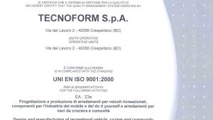 The first two ISO 9001 certifications are obtained with ICILA for the furniture and carpentry division and with RINA for the naval sector.