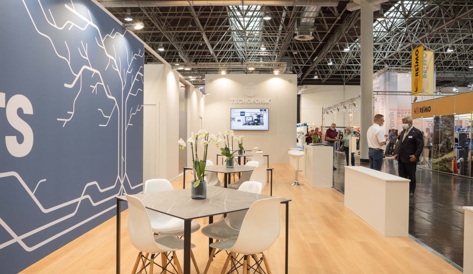 Paragraphe: Tecnoform est présent au rendez-vous annuel incontournable de Düsseldorf et le fait en lançant un nouveau slogan "Back to the roots". Cela signifie revenir au produit de base, celui qui nous distingue et nous a rendus célèbres : le battant suspendu de qualité esthétique et performant et les innovants plans de travail horizontaux.