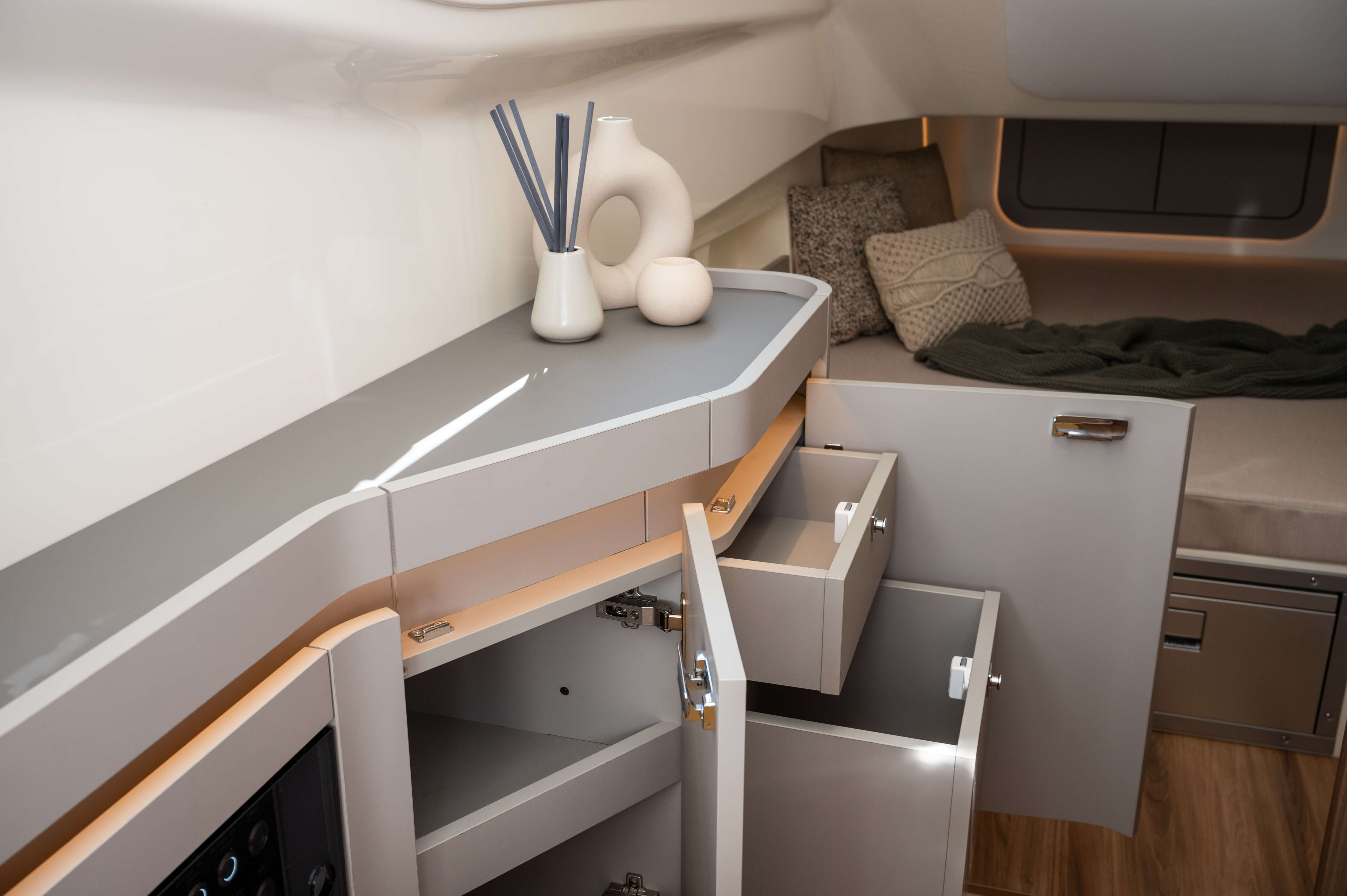 Each furniture project is engineered according to the specific boat model and the specific requests of the OEM.