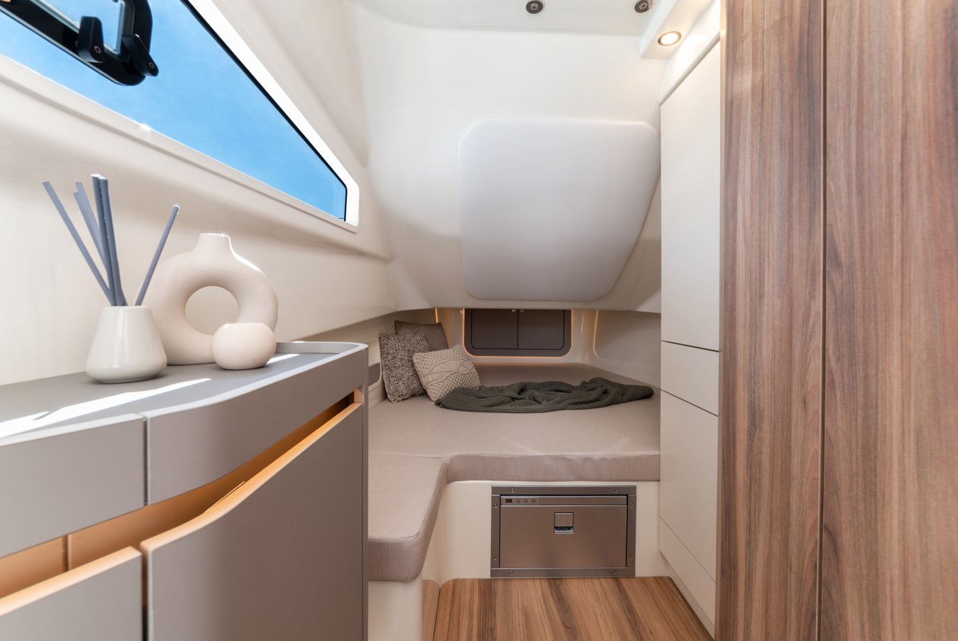 For Tecnoform, furnishing yachts & ribs is a natural evolution of our well-established expertise in the RV sector. Our deep roots lie in the very essence of wood—its grain, its character—and over time, they have evolved into a deep knowledge of modern, more innovative materials. This passion and expertise form the core of our identity, and it's what drives our commitment to designing furniture for the most challenging and captivating environment of all: the sea.